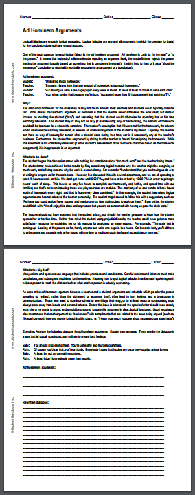 Free Printable PDF Worksheet on Debate and Logic - Social Studies Worksheets - World History. Attacking a persons character instead of the content of that persons argument. LOGICAL FALLACIES WHAT IS A LOGICAL FALLACY.